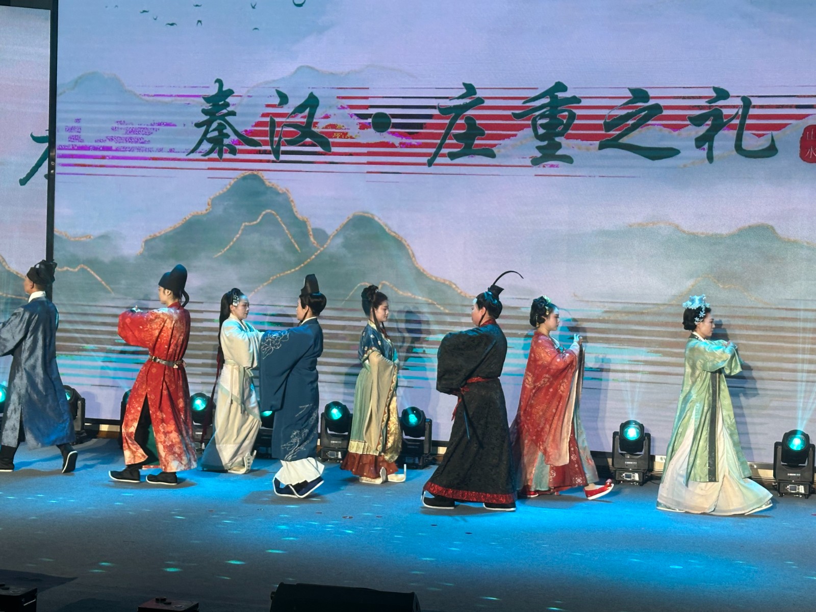 联欢活动在局机关工作人员带来的舞蹈《盛世欢歌》中拉开帷幕。演员们身着华服,以灵动欢快的舞姿演绎盛世华章,瞬间点燃现场氛围。紧接着,该县图书馆工作人员带来的汉服演绎《衣冠上国·诗画千年》,通过典雅的服饰与沉浸式表演,带领观众穿越古今,感受中华传统文化的深厚底蕴。该县文化馆原创音乐情景剧《房妈去哪儿了》则以贴近生活的剧情、细腻精湛的演技,生动再现文旅工作场景,引发全场共鸣,赢得阵阵掌声。